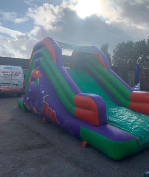 At Superslides Manchester, we prioritise safety above all else. Our Purple Up and Over Slide is made from high-quality materials and constructed to the highest standards. It features secure handrails and a sturdy base, ensuring that every slide is a safe and enjoyable experience for your guests. 😊