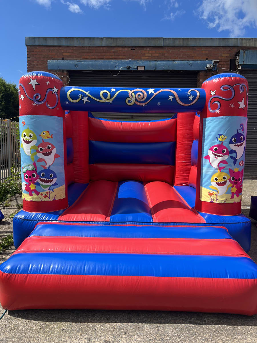 Our Blue and Red Baby Shark bouncy castle is a go-to choice for parents and event organisers in Salford, Swinton, Walkden, Little Hulton, and other delivery areas. 🚗🎁